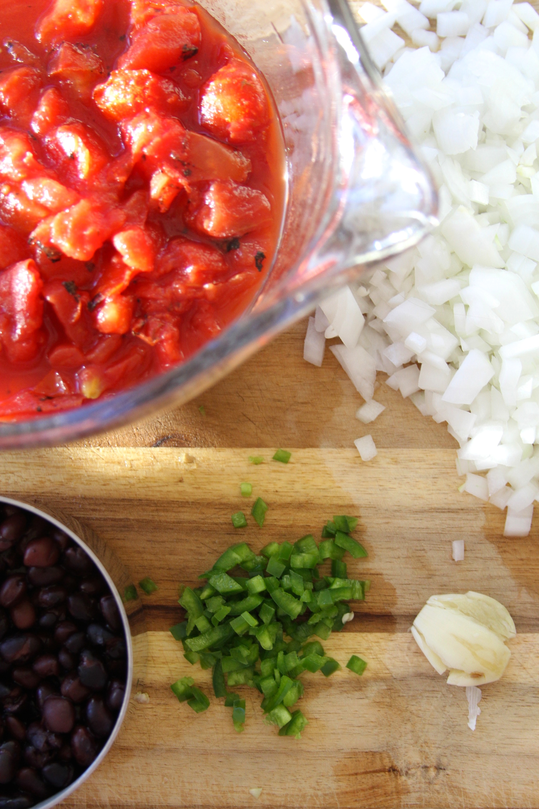 - 1-28 oz can whole tomatoes, fire-roasted (I used diced tomatoes and it was still delicious)